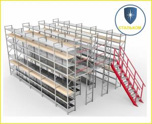 Складской мезонин — многоярусная металлическая стеллажная конструкция, разделённая этажами. Мезонины необходимы, в случаях необходимости максимального использования высоты помещения за счёт увеличения этажности склада.Мезонинная конструкция позволяет увеличить полезную площадь склада. Мезонин используется для размещения офисного пространства, легких стеллажных конструкций, дополнительных торговых площадей.