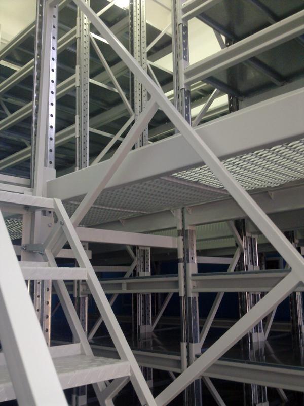 Несущей частью мезонина являются паллетные или полочные стеллажи.